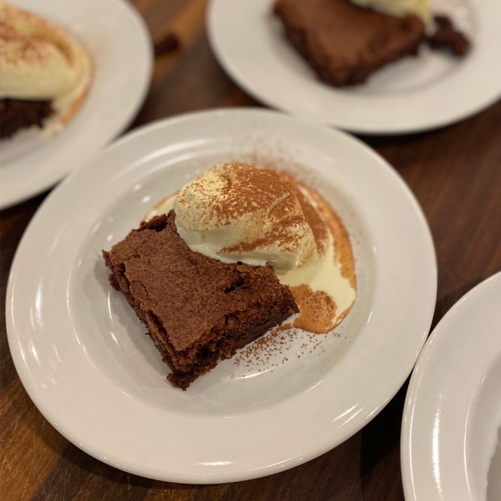 • Dulce de Leche Brownies with Cinnamon Ice Cream